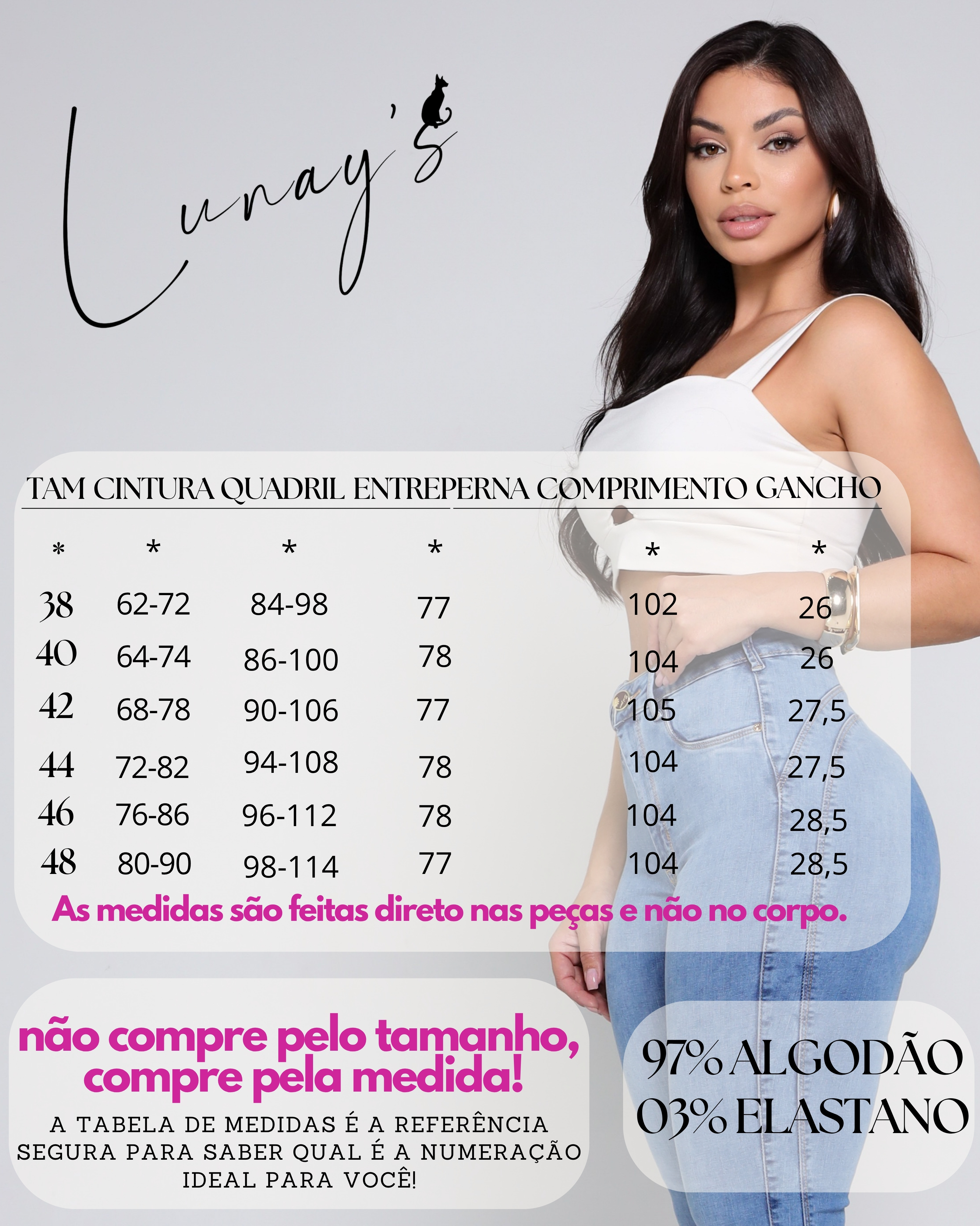 A Linha Levanta Bumbum da Sol Jeans/Conclusão Jeans é um verdadeiro sucesso e conquista o coração das mulheres. Essas peças são as queridinhas por seu poder de realçar e valorizar o corpo feminino. A modelagem levanta bumbum da Sol Jeans/Conclusão Jeans é cuidadosamente desenvolvida com base em estudos da anatomia feminina, visando proporcionar um efeito de levantamento sutil e natural, valorizando ainda mais as curvas do corpo. Cada peça da Linha Levanta Bumbum é única, com modelos diferentes pensados especialmente em você. A Sol Jeans/Conclusão Jeans entende que todas as mulheres têm diferentes estilos, tamanhos e necessidades, e, por isso, oferece uma variedade de opções para atender a todas. As peças da Linha Levanta Bumbum da Sol Jeans/Conclusão Jeans são projetadas para fazer você se sentir confiante e poderosa em qualquer ocasião. O efeito levanta bumbum não apenas realça suas curvas, mas também oferece um caimento impecável, garantindo o máximo de conforto e estilo. Essas peças únicas são projetadas para elevar sua autoestima e tornar seu dia a dia ainda mais especial. Com a Linha Levanta Bumbum da Sol Jeans/Conclusão Jeans, você pode se sentir confiante em cada passo que der, sabendo que está usando uma peça desenvolvida com qualidade e cuidado. Escolha a Linha Levanta Bumbum da Sol Jeans/Conclusão Jeans e descubra como é possível realçar sua beleza natural de maneira elegante e sofisticada. Escolha qualidade, escolha estilo, escolha Sol Jeans/Conclusão Jeans!